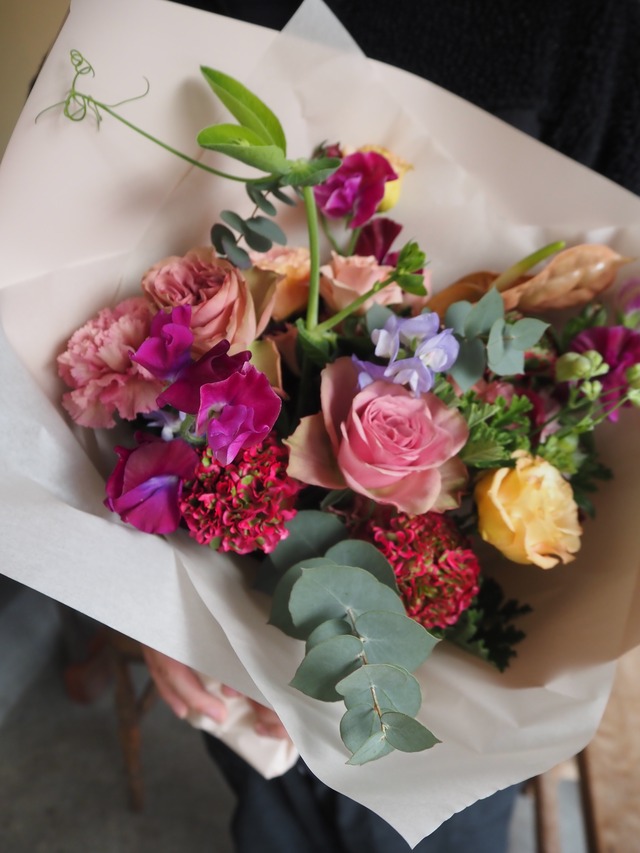 母の日 生花花束Sサイズ 5/5(月)〜5/11(日)の期間に店頭ご来店にてお渡しの商品です。 必ず備考欄に受取日と来店予定時間をご記入ください。 ※ご来店受け取りの2日前までにご注文ください。 生花花束Sサイズ 花束サイズ 約 h30cm × w25cm ※画像はイメージです、季節のおすすめ花材でお作りいたします。 1.ピンク系(可愛らしく柔らかなイメージ) 2.イエロー系 (明るくさわやかなイメージ) 3.ホワイトグリーン系(シンプルで上品なイメージ) 4.おまかせ お好きなイメージをお選びください。 ひとつひとつ大切にお作り致します。 --------------------------------------------- ご注文の前に1〜3のオーダーに関する注意事項をご確認ください。 1.画像はイメージです。 おすすめの季節の花でお作りします。 2.お花の内容、細かなお色や品種の指定はお受けできません。 3.花束には母の日カードをお付けします。 『 Thank you mother 』 ご不要の際は備考欄にて(母の日カード不要)とご記入ください。